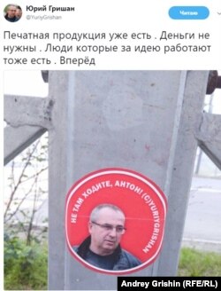 В Магадане на самых разбитых и неблагоустроенных улицах города повсюду внезапно появились спрайты (уличные рисунки, выполненные через трафарет), на которых нарисован мэр города и надпись: "Не там ходите, Антон". Автором этой фразы является глава Магадана Юрий Гришан. А сказал он ее в твиттере, поспорив там с магаданским блогером Антоном Афанасьевым о том, как в городе идут благоустроительные работы.