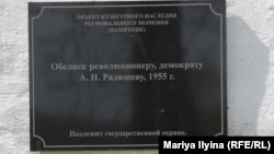 Обелиск, поставленный в честь Радищева, как бы делит деревню на две части – с одной стороны дорога плохая, с другой – еще хуже. Наталья Дежкина, бывшая заведующая местным Домом культуры, довезла мужа из областного онкоцентра как раз до памятника: