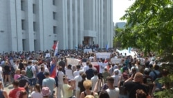Несмотря на 30 градусную жару, люди митингуют возле здания правительства края уже два часа. Колонна после шествия по центру города до сих пор возвращается с главной улицы – уже больше 40 минут.