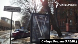 Количество пропагандистских баннеров и рекламы, в том числе с латинскими V и Z, отличается от района к району. Но чем ближе к штабу Восточного военного округа и административным зданиям, тем пропаганды больше. Так, прямо напротив Центра психологической работы Восточного военного округа огромный портрет "героя" Виктора Череды.