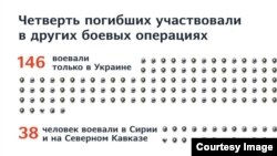 Больше всего верифицированных погибших из 11-й десантно-штурмовой бригады, она базируется в посёлке Сосновый Бор под Улан-Удэ. В ней служит 2500 человек, а убито минимум 30. Из 5-й гвардейской Тацинской танковой бригады в Улан-Удэ, где служит около 3 тысяч человек, погибло минимум 23.